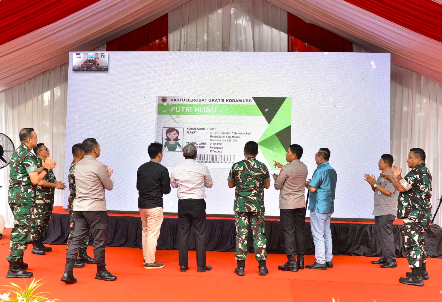 Kegiatan ini berlangsung di Rumah Sakit Putri Hijau Kota Medan, dan dihadiri Gubernur Sumatera Utara yang diwakili Staf Ahli Gubernur Bidang Pendidikan, Kesehatan, Infrastruktur, dan Pemberdayaan Masyarakat, unsur Forkopimda Sumatera Utara, unsur Forkopimda Kota Medan, Wali Kota Medan yang diwakili Staf Ahli Wali Kota Bidang Pemerintahan, Hukum, dan Politik, Kepala Rumah Sakit Putri Hijau Medan, Kepala Dinas Kesehatan Provinsi Sumatera Utara, Kepala Dinas Sosial Provinsi Sumatera Utara, para pejabat tinggi di jajaran Kodam I/Bukit Barisan, Kepala BPJS Kesehatan Cabang Kota Medan, serta para undangan dan penerima manfaat kartu berobat gratis.
